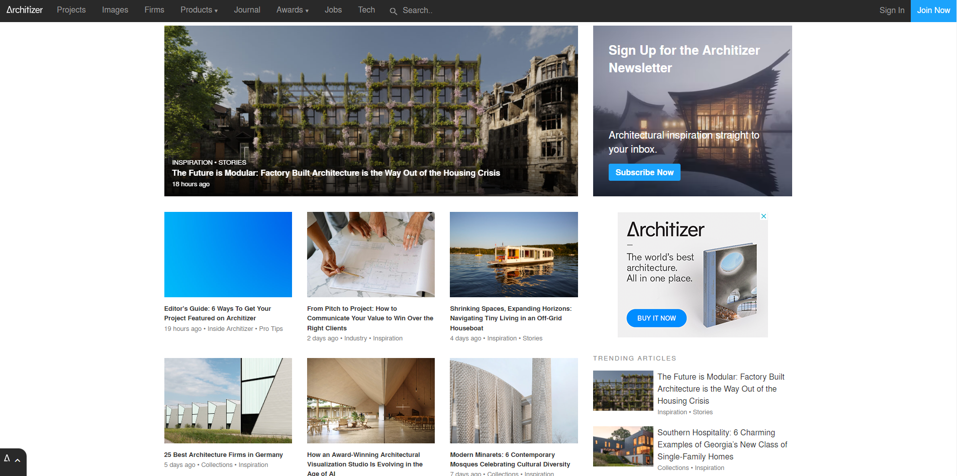 Architizer takes a unique approach, serving as a blog and a database of inspiring architectural projects. In addition to news and analysis, the site features an impressive portfolio of award-winning buildings, searchable building types, and design attributes. Architizer also hosts an annual A+Awards program that celebrates design excellence worldwide.