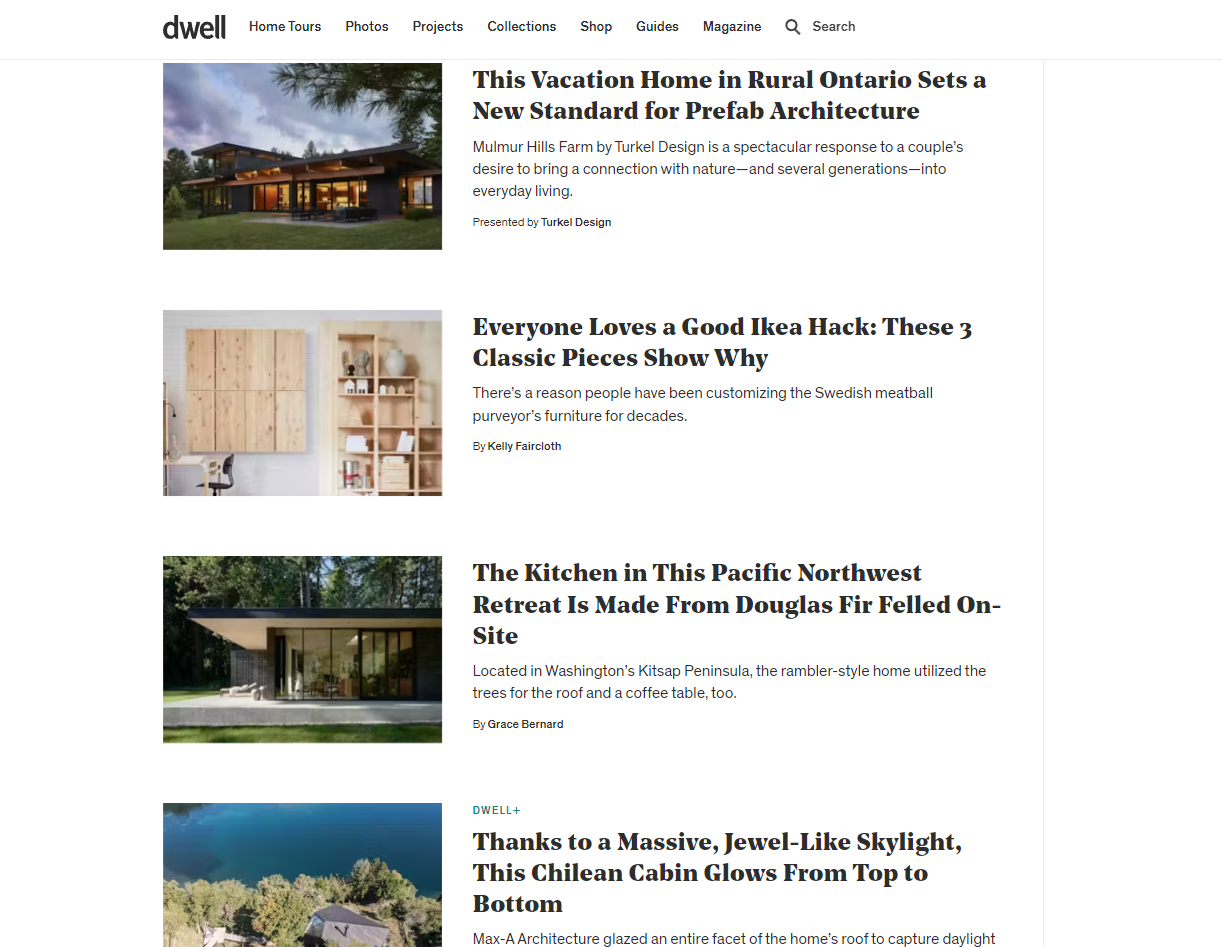 - Dwell: A premier source for modern architecture and interior design inspiration.