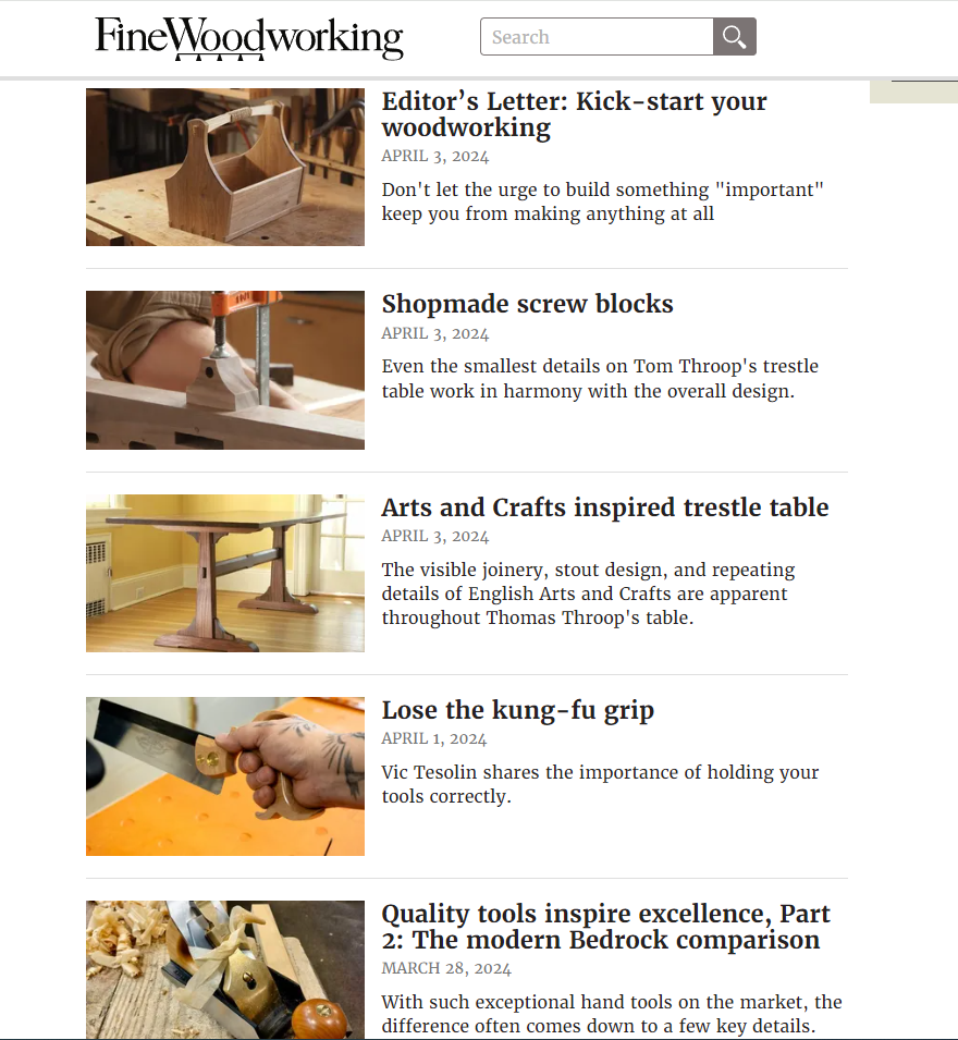 Fine Woodworking: It is the ultimate resource for furniture designers and makers seeking expert technical guidance and inspiration to elevate their design.