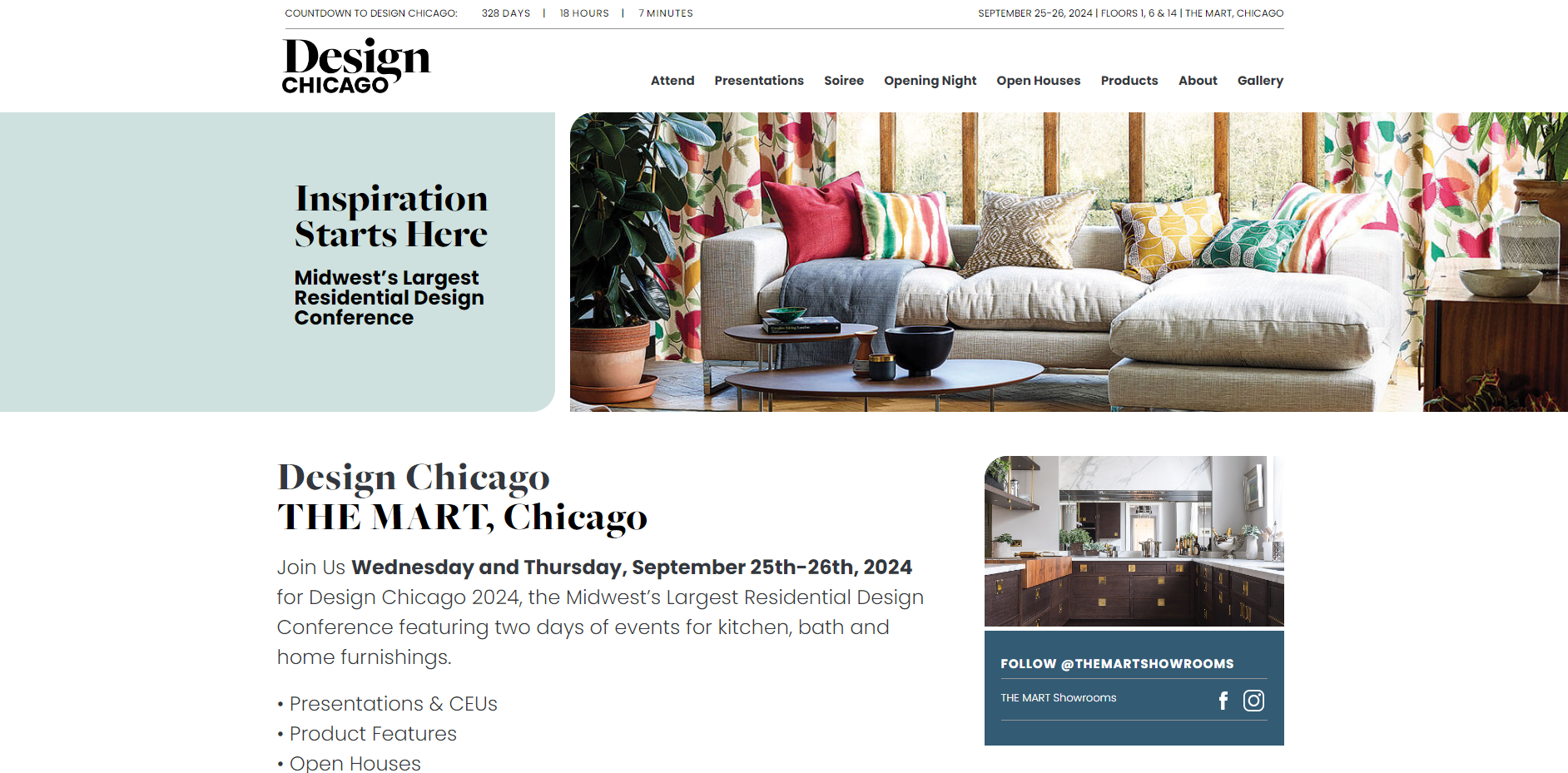 Design Chicago, as Midwest’s Largest Residential Design Conference, featuring two days of events for kitchen, bath, and home furnishings. Includes exhibition & conference, presentations, CEUs, and Open Houses.