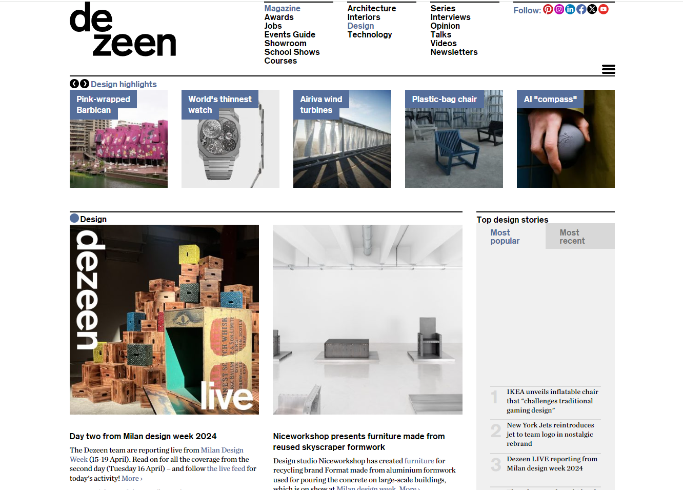 - Dezeen continues to be an essential read for its authoritative coverage of product launches, designer profiles, and overarching industry trends. As a trusted and respected source, Dezeen provides industrial designers with a holistic understanding of the design landscape.